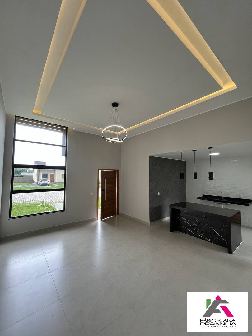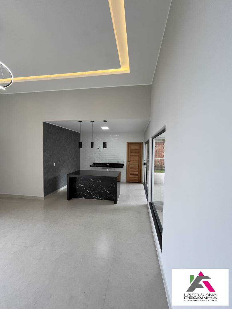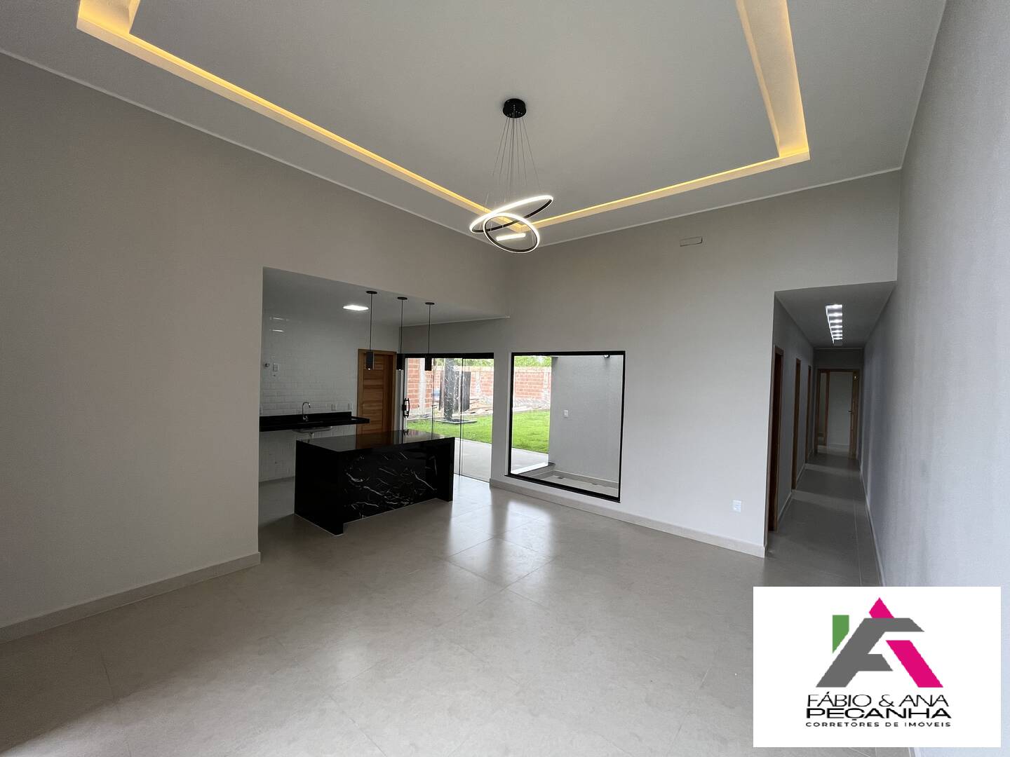 Descrições: Casa no condomínio Vivere 730 mil, 137 m2 de área construída sala ampla com pé direito alto rebaixamento de gesso Luminárias em Led lustre conceito aberto cozinha com bancada de granito e ilha 3/4 sendo um suíte com closet banheiros com box Blindex nicho e pia de granito com cuba de apoio casa toda rebaixada em gesso e com Luminárias em Led toda em Porcelanato fosco e Porcelanato polido nos banheiros jardim de inverno lavabo externo área de churrasqueira coberta em Porcelanato chuveiro terreno gramado com espaço para instalação de piscina garagem coberta para um carro mais uma moto jardinagem na parte da frente